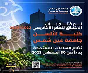 Prof. Dr. Salwa Rashad, Dean of the Faculty of Al-Alsun, Ain Shams University, announced the opening of applications for the academic year 2022-2023, the credit-hour system, starting from August 30, 2022, under the auspices of Prof. Dr. Mahmoud El-Metini, President of the University and Prof. Dr. Abdel Fattah Saoud, Vice President for Education and Student Affairs.