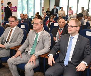 After the reception ceremony at the Saffron Palace, the delegation headed to participate in the activities of the scientific day at the Innovation and Entrepreneurship Building ihub, where he spoke at the opening session. Ayman Saleh, Vice President of Ain Shams University for Graduate Studies and Research Affairs, and the German Deputy Minister of Education. After the opening session, there were presentations from German and Egyptian professors, followed by a discussion session between the two sides with the participation of Dr. Abdel Kawy Khalifa and Prof. Dr. Ayman Farid Abu Hadid and Prof. Dr. Noha Donia, Dean of the Faculty of Graduate Studies and Environmental Research at the university, and Prof. Ali El Bahrawy, Professor of Irrigation and Hydraulics at the Faculty of Engineering, along with three professors from German universities. The session was followed by three workshops in specialized fields to enhance cooperation between the two sides. Recommendations were made on the basis of which a conception of cooperation protocols between the two sides would be developed.