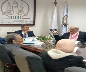 On 9/1/2023, the Council of the Faculty of Archeology at Ain Shams University held its fourteenth monthly meeting in the Faculty Council Hall, headed by Prof. Dr. Hossam Tantawi, Dean of the Faculty, the membership of Mr. Professor, Vice Dean for Postgraduate Studies, heads of scientific departments, and members of the Council.