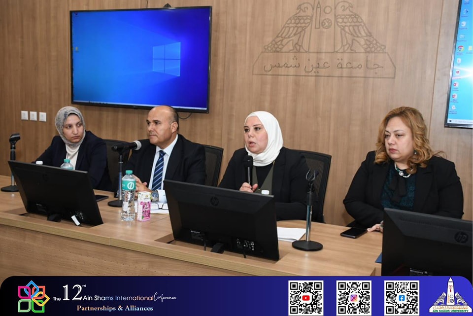 The first session was about “The Role of State Institutions in Protecting Women Against the Risks of Cybercrime,” in the presence of Prof. Hanan Kamel, Chairman of the session, Dean of the Faculty of Arts, Ain Shams University, Counselor Amal Ammar, Assistant Minister of Justice for Human Rights Affairs, Prof. Hatem Rabie, Vice Dean of the Faculty of Arts for Postgraduate Studies, Prof. Hend Al-Helaly, Director of Women support and Anti-Violence against Women at Ain Shams University.