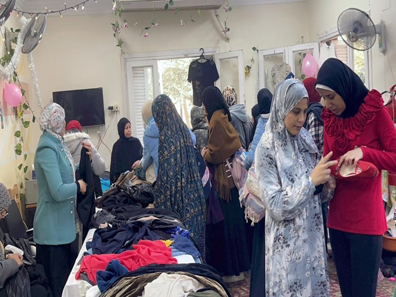 Under the patronage of Prof. Mohamed Diaa Zain El-Abedeen, President of Ain Shams University, the Education and Students Sector organized a charity exhibition in the university dormitories for female students and external branches as part of the Dokkan Al-Farha initiative, where about 1,000 pieces of clothing were distributed free of charge to female students.