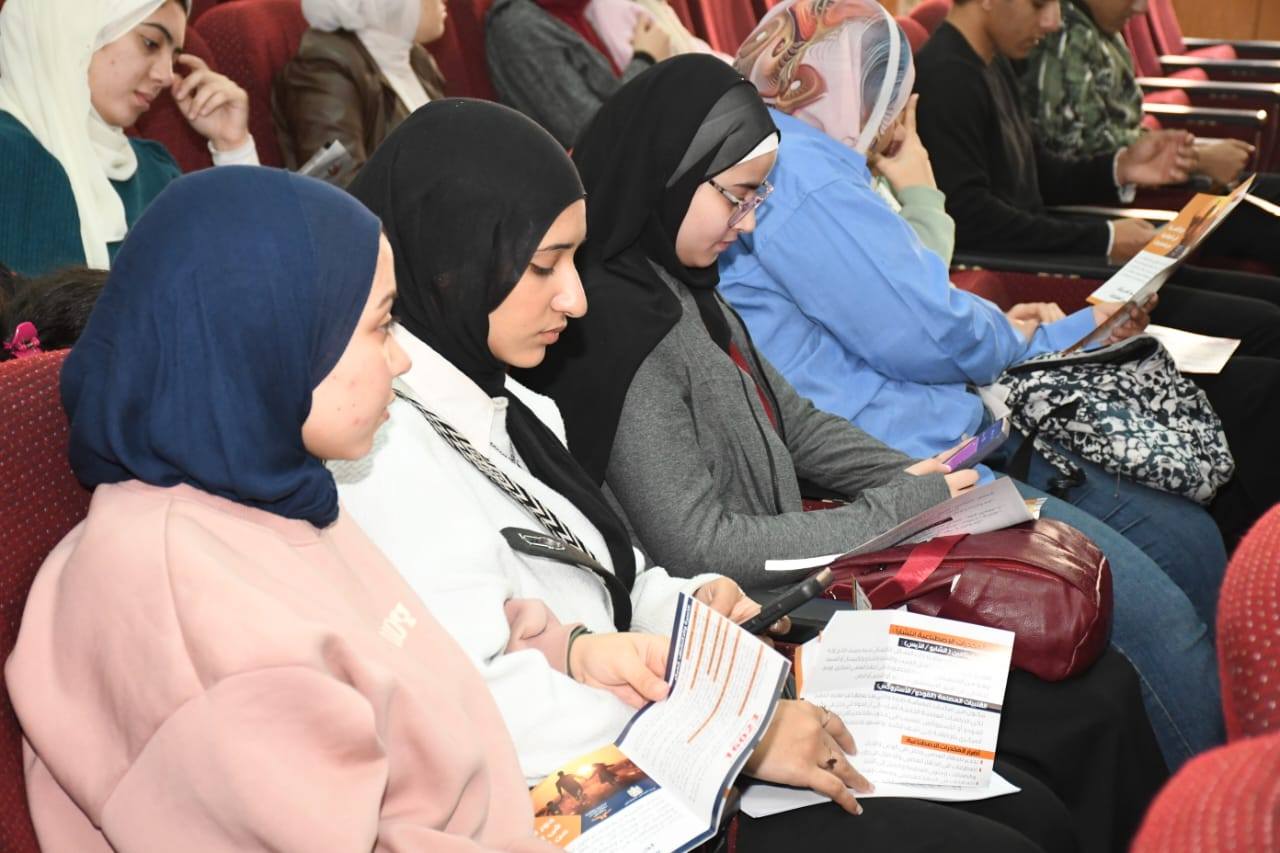Under the patronage of Prof. Mohamed Diaa Zain El-Abedeen, President of the University, Prof. Ghada Farouk, Vice President for Community Service and Environmental Development Affairs, with the kind hosting of Prof. Salwa Rashad, Dean of the Faculty, and the supervision of Prof. Hala Sayed Metwally, Vice Dean of the Faculty for Education and Student Affairs, Prof. Yomna Safwat, Vice Dean of the Faculty for Community Service and Environmental Development Affairs, Dr. Rasha Mohamed Rashad, Researcher at the Fund for Combating and Treating Addiction and Drug Abuse, headed by the Council of Ministers, and Dr. Badr Abdel Aziz Badr, Director General of Legal Affairs at the Fund for Combating and Treating Addiction and Drug Abuse, headed by the Council of Ministers, gave lectures.
