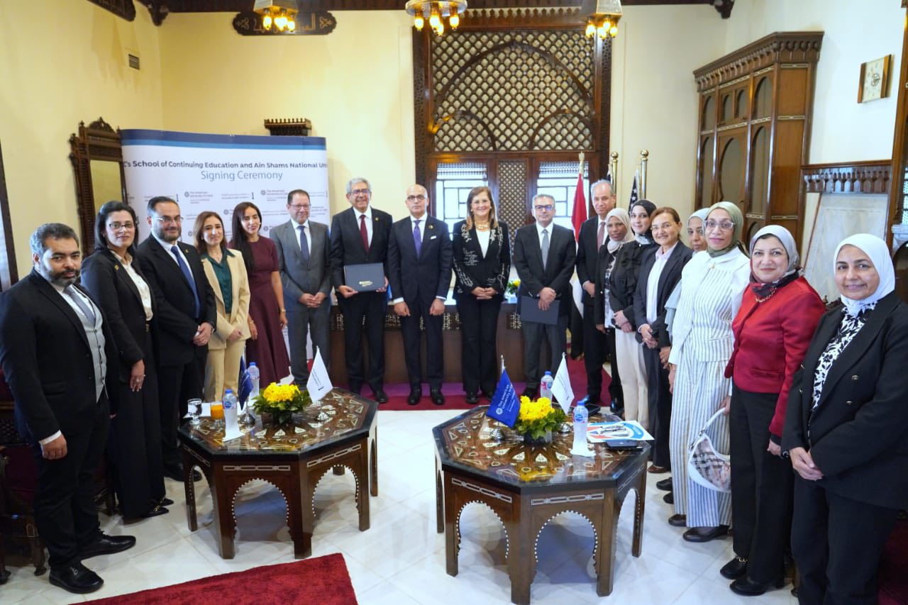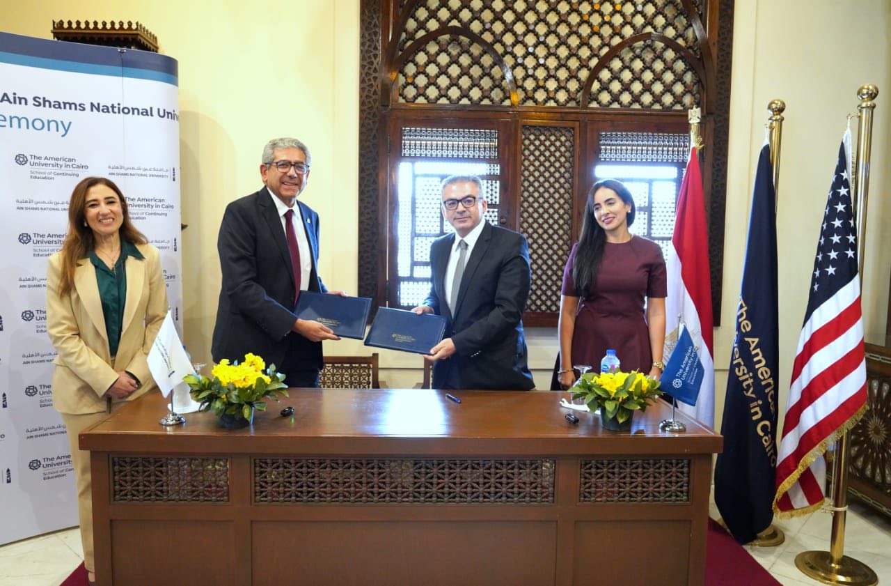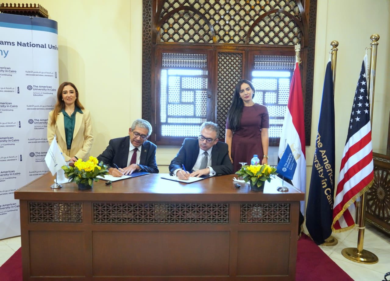 The agreement was signed by Prof. Ali El-Anwar, Dean of the Faculty of Medicine and Chairman of Ain Shams University Hospitals, representing Ain Shams University, and Dr. Mahmoud Allam, Dean of the School of Continuing Education at AUC, representing the American University in Cairo.
