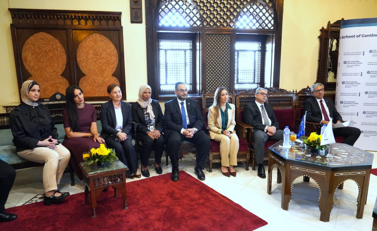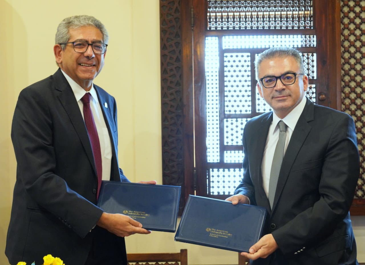 The ceremony was attended by Dr. Hala El-Said, Advisor to the President of Egypt for Economic Development and former Minister of Planning and Economic Development; Prof. Mohamed Diaa Zain El-Abedeen, President of Ain Shams University; Dr. Ehab Abdel-Rahman, AUC Provost; and Prof. Mohamed Saleheen, Vice President of Ain Shams National University for Academic Affairs, along with a distinguished group of academic leaders from both institutions.