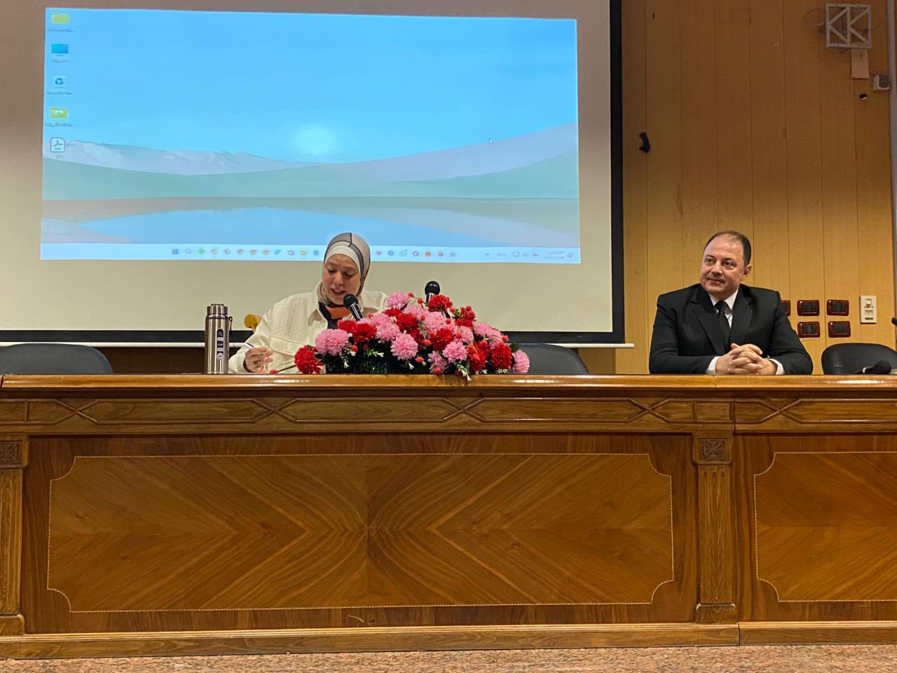 The workshop witnessed a large attendance from faculty staff, teaching assistants, and students. It hosted Dr. Hany Shaker, Director of the Digital Library at Ain Shams University, who delivered an extensive presentation addressing modern uses of artificial intelligence in enhancing the efficiency of the educational process and scientific research.