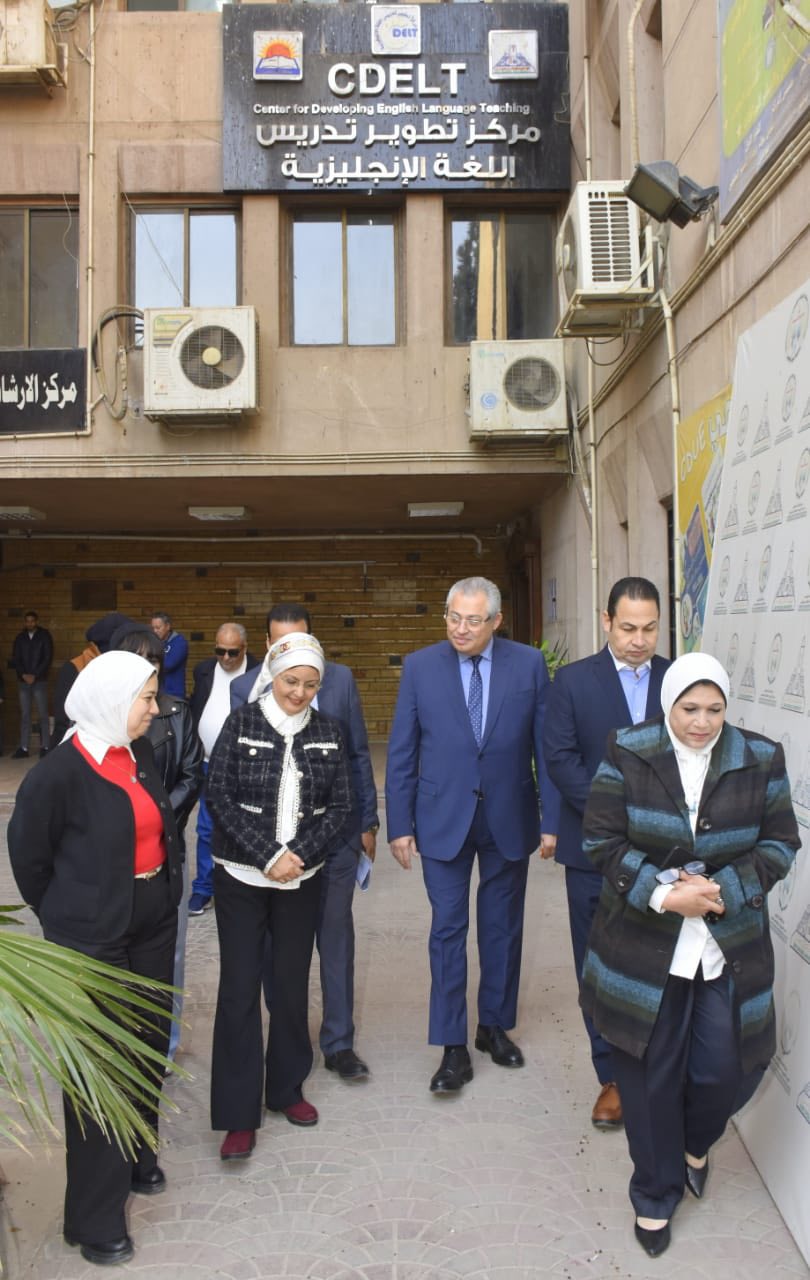 His Excellency was accompanied during his inspection tour by Prof. Safaa Shehata, Dean of the Faculty of Education, Prof. Hani Youssef, Vice Dean of the Faculty of Education for Education and Student Affairs, Prof. Abdel Nasser Rashad, Vice Dean of the Faculty for Graduate Studies and Research, Mr. Ibrahim Saeed Hamza, Assistant Secretary of the University for the Education and Student Sector, and Dr. Samar Ragab, Lecturer of the Special Education at the Faculty.