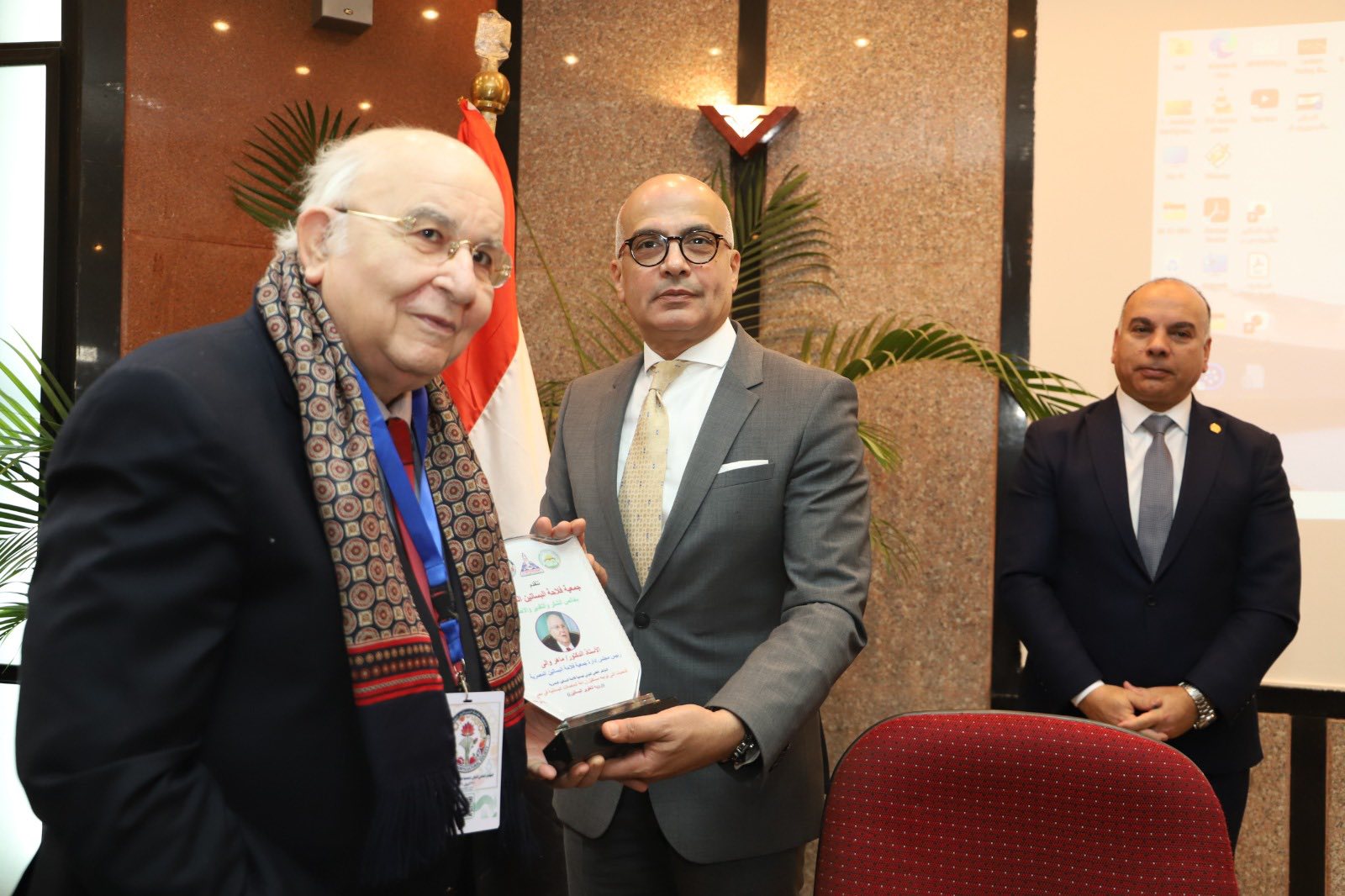 The conference was held in the presence of Major General Ibrahim Fawzi from the Future of Egypt Authority, Prof. Ahmed Abu El-Yazid, Vice Dean for Community Service and Environmental Development, Prof. Mona Zayed, Vice Dean for Graduate Studies and Research, Prof. Manal Mubarak, Vice Dean for Education and Student Affairs, Prof. Maher Wali, Chairman of the Egyptian Horticulture Association, Prof. Ayman Farid Abu Hadid, Conference President, Professor of Horticulture at the Faculty of Agriculture, former Minister of Agriculture and Land Reclamation, Vice Chairman of the Association, and Editor-in-Chief of the Egyptian Journal of Horticulture, along with a distinguished group of faculty staff, researchers, and conference coordinators.