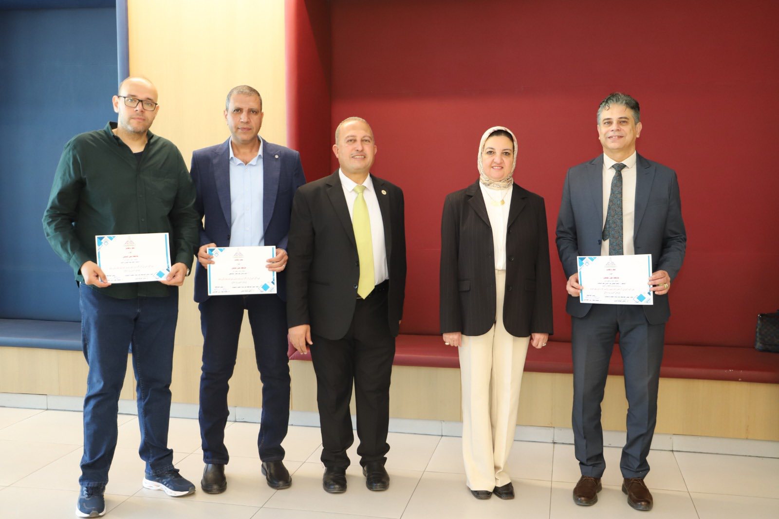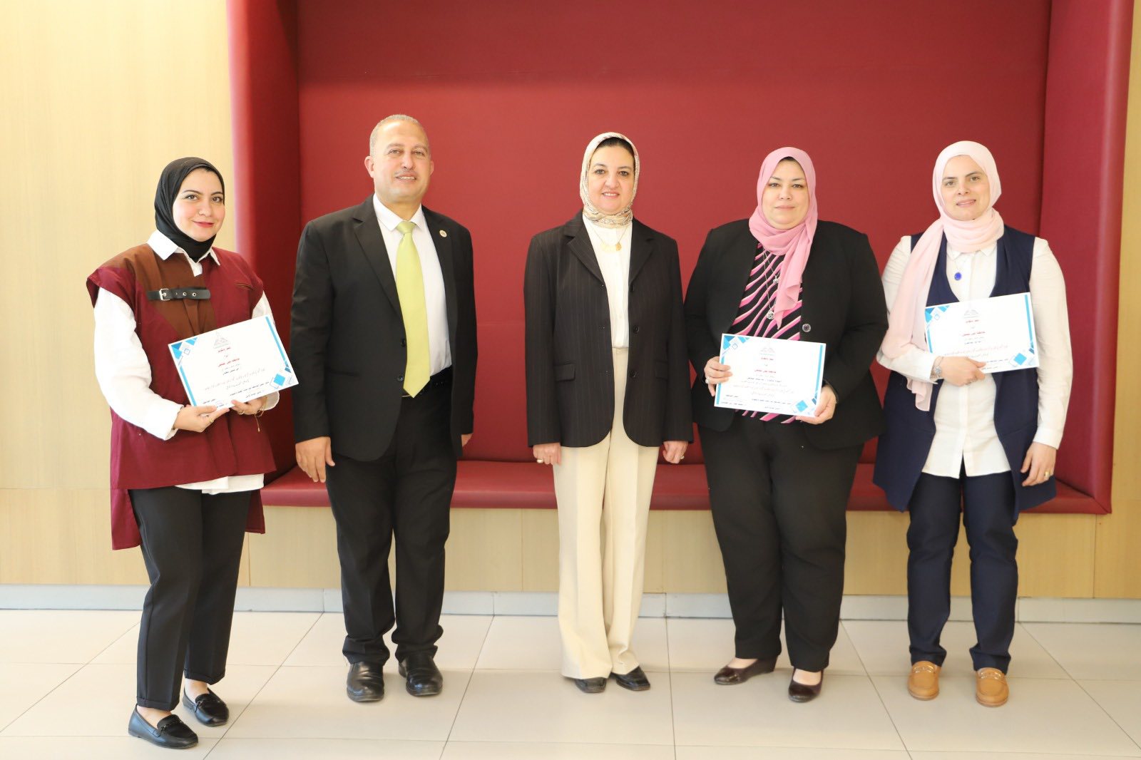 The meeting also included honoring the team from the university's Awards Office, headed by Prof. Alaa El-Din Farag, who were presented with certificates of appreciation for their efforts in supporting the awards system and enhancing research competitiveness.