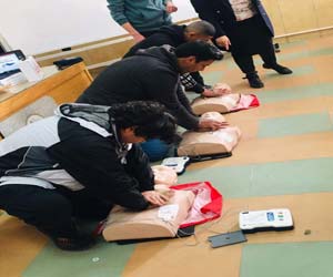 وأعقب ذلك عرضها لصفات المسعف ومكونات حقيبة الإسعافات الأولية، وأساسيات دعم الحياة الأساسية BLS، وقامت بالتدريب العملي على الانعاش القلبي الرئوي الاساسي باستخدام أحدث أجهزة المحاكاة من مانيكان كبار وأطفال وجهاز مزيل الرجفان الخارجي ال AED.