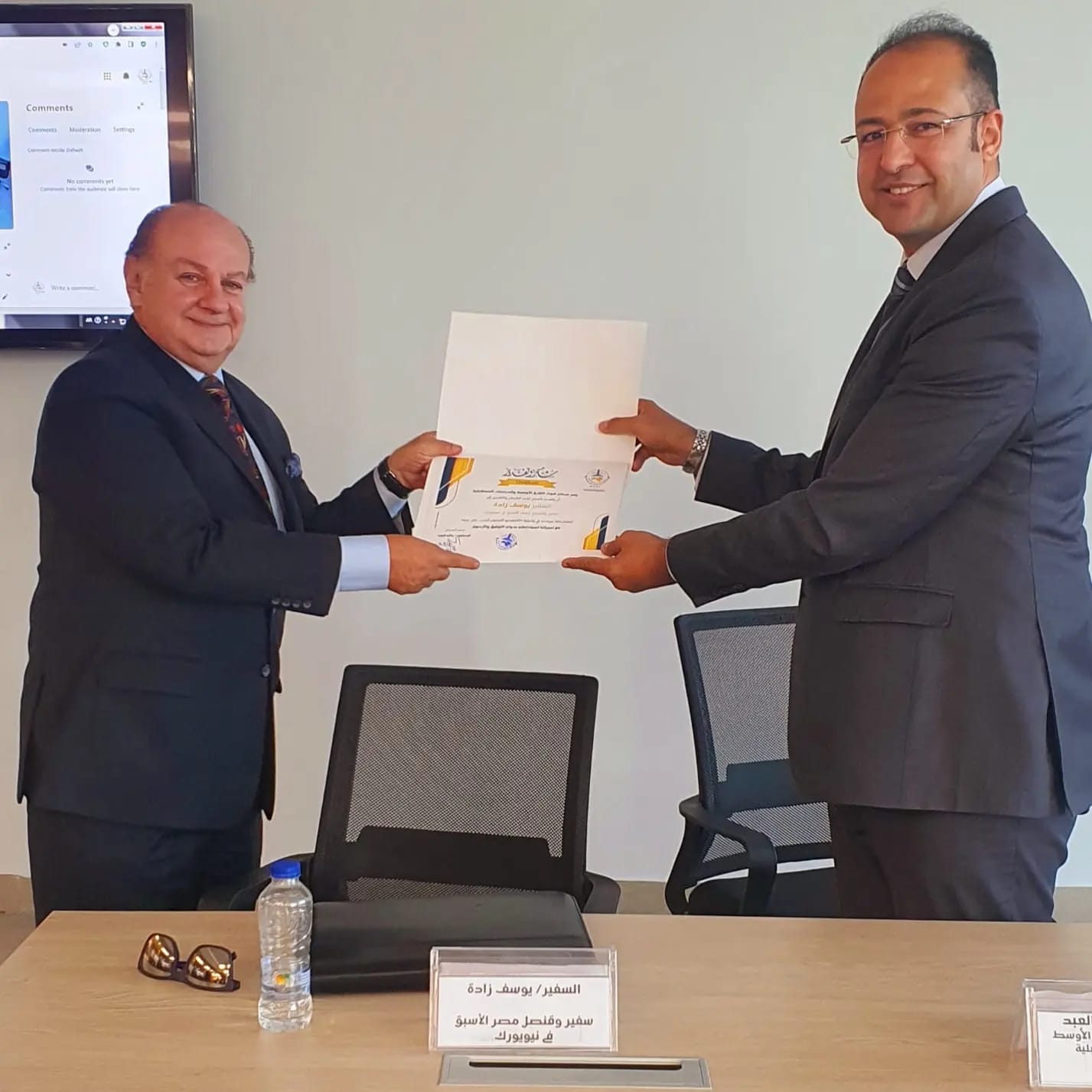 في نهاية الفاعلية، قام الدكتور/ حاتم العبد، بتقديم شهادات التكريم إلى السادة الضيوف تقديرًا لجهدهم المتميز ومشاركتهم المثمرة في الفاعلية.