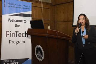 ثم تقدّمت الأستاذة الدكتورة هيام وهبة بكلمة ترحيبية، عرضت فيها الغرض من اختيار برنامجي التكنولوجيا المالية والتسويق الرقمي، موضحة ندرة هذه التخصصات وحاجتها الملحة في السوق المصري المحلي. كما قدمت بيانات حول نسب الزيادة السنوية في الطلب على هذه المجالات، ونصحت الطلاب بالاستفادة القصوى من الفرص الأكاديمية والمهنية التي توفرها الكلية.
