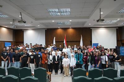 افتتح الأستاذ الدكتور محمد ضياء زين العابدين رئيس جامعة عين شمس والقائم بأعمال رئيس جامعة عين شمس الأهلية اللقاء التعريفي لطلاب الدفعة الأولى بكلية الأعمال بجامعة عين شمس الأهلية، بحضور أ. د. محمد صالحين نائب رئيس جامعة عين شمس الأهلية للشؤون الأكاديمية وأ. د. فريد محرم عميد كلية التجارة بجامعة عين شمس وأ. د. هيام وهبة الأستاذ بكلية التجارة جامعة عين شمس، د. نهى عادل مدير برامج الأعمال بجامعة عين شمس الأهلية و أ. سمير عثمان القائم بعمل أمين عام جامعة عين شمس الأهلية.
