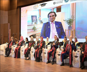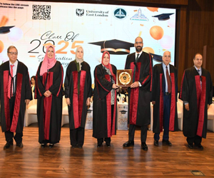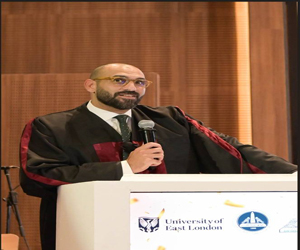 كما ألقى "د. أريش صديقي" مدير العلاقات الدولية بجامعة إيست لندن من خلال فيديو مسجل، كلمة أعرب فيها عن سعادته الغامرة بمشاركة الخريجين وأسرهم فرحة هذا اليوم المميز، وبتتويج سنوات من الجد والاجتهاد بالنجاح والتفوق.
