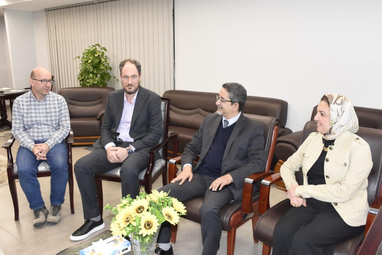 وقد استقبل الوفد الأستاذة الدكتورة أماني أسامة كامل نائب رئيس الجامعة لشؤون الدراسات العليا والبحوث، بحضور الأستاذة الدكتورة نيفين عاصم الرئيس التنفيذي لقطاع الابتكار والتدريب ومدير المشروع بجامعة عين شمس، والأستاذ الدكتور وليد الختام أستاذ الطاقة المتجددة بكلية الهندسة والباحث الرئيسي للمشروع، والأستاذ الدكتور محمد عبد العزيز وكيل كلية الهندسة لشؤون التعليم والطلاب.