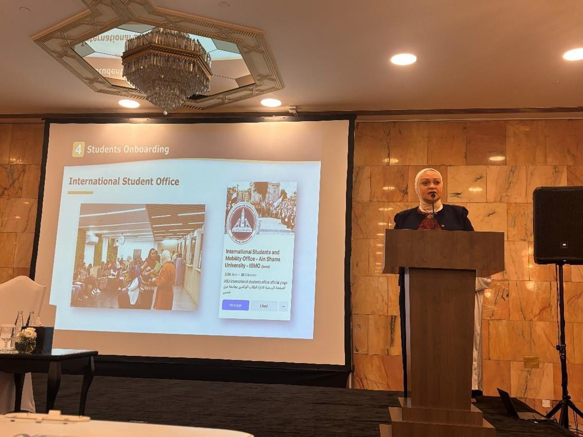 إلى جانب وفد جامعة عين شمس الذي ضم الأستاذة الدكتورة دينا سامي لاشين مدير إدارة الوافدين والدكتورة حنان يسري هندي منسق الوافدين بكلية الحاسبات والمعلومات، والأستاذة ريهام العطيفي مدير عام شؤون التعليم والطلاب.