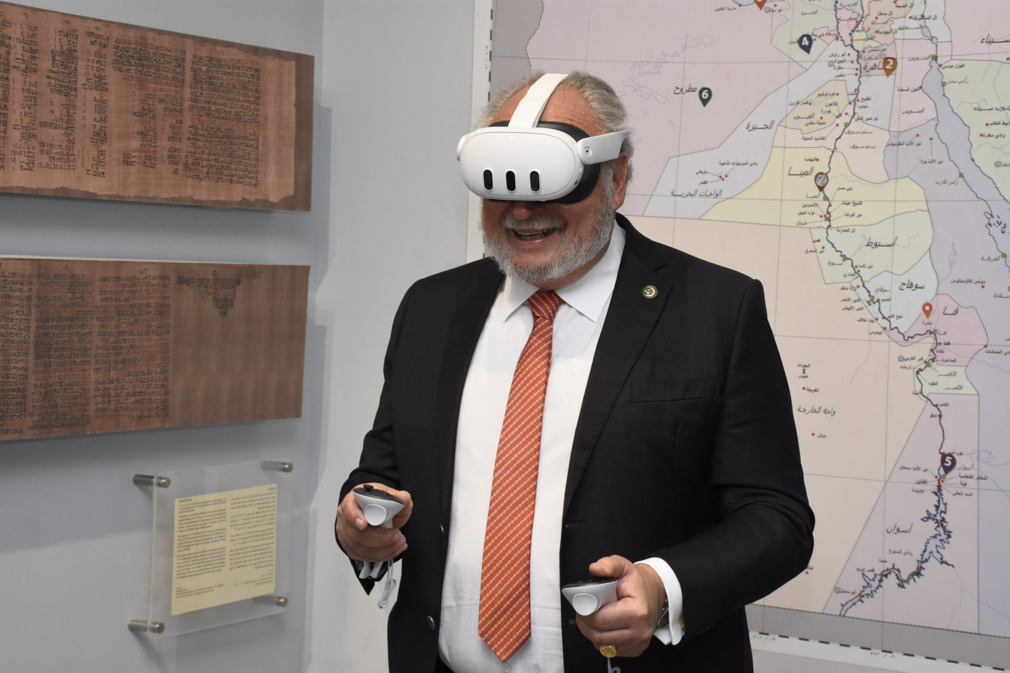 كذلك قام الضيوف بجولة في الطابق السفلي للقصر والذي تحول مؤخراً لمتحف يبرز الآثار المصرية القديمة بالتعاون مع وزارة السياحة والآثار تحت مسمى "متحف الزعفران" والذي يضم مقتنيات نادرة تسرد تاريخ الجامعة وتطورها.