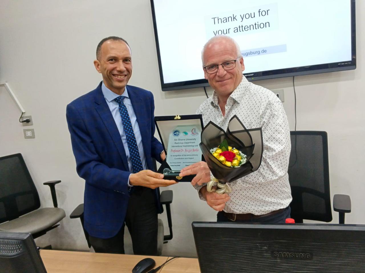 في خطوة تعزز مكانة جامعة عين شمس كمركز إقليمي رائد، استقبلت وحدة الأشعة التداخلية وقسطرة المخ بطب عين شمس الخبير العالمي البروفيسور "أنسجار بيرليس" (Ansgar Berlis)، أستاذ ورئيس قسم الأشعة التداخلية وقسطرة المخ وأحد أبرز القامات الدولية في هذا التخصص.