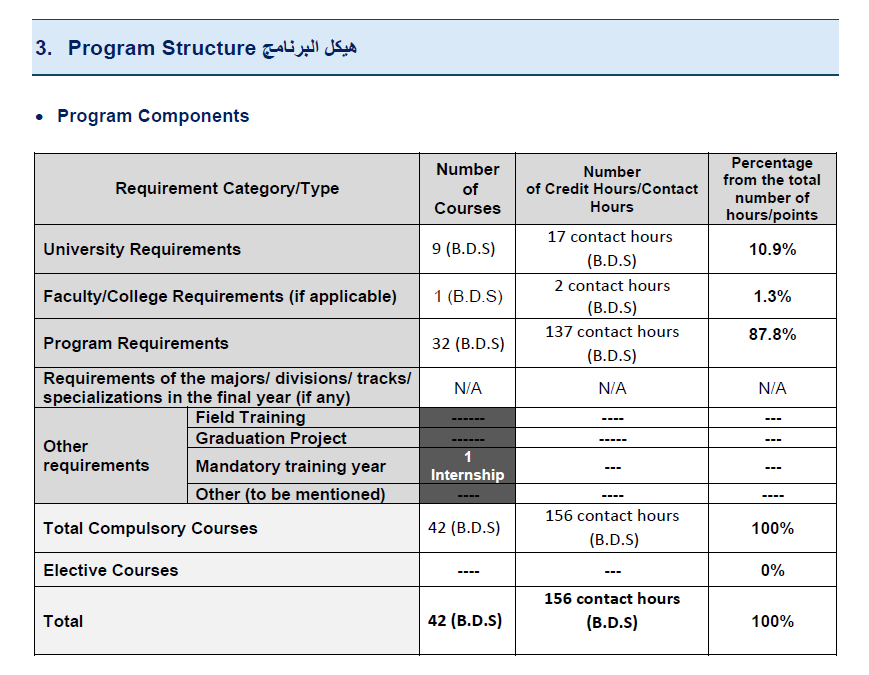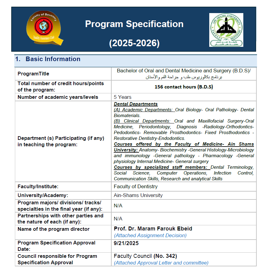 للاطلاع على وثيقة مواصفات برنامج البكالوريوس في طب وجراحة الفم والأسنان (B.D.S):
