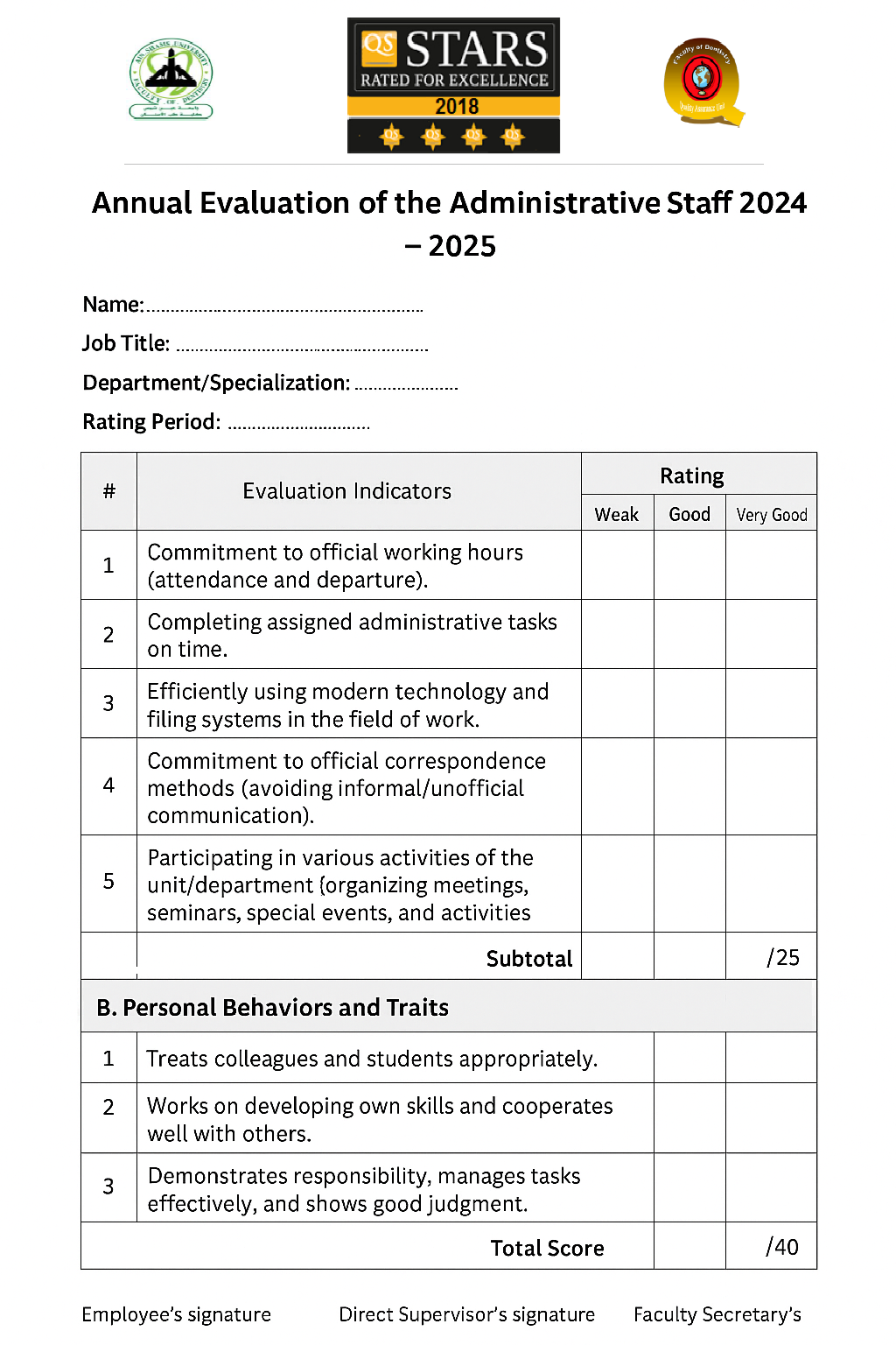 Annual Performance Evaluation Criteria for the Administrative Staff