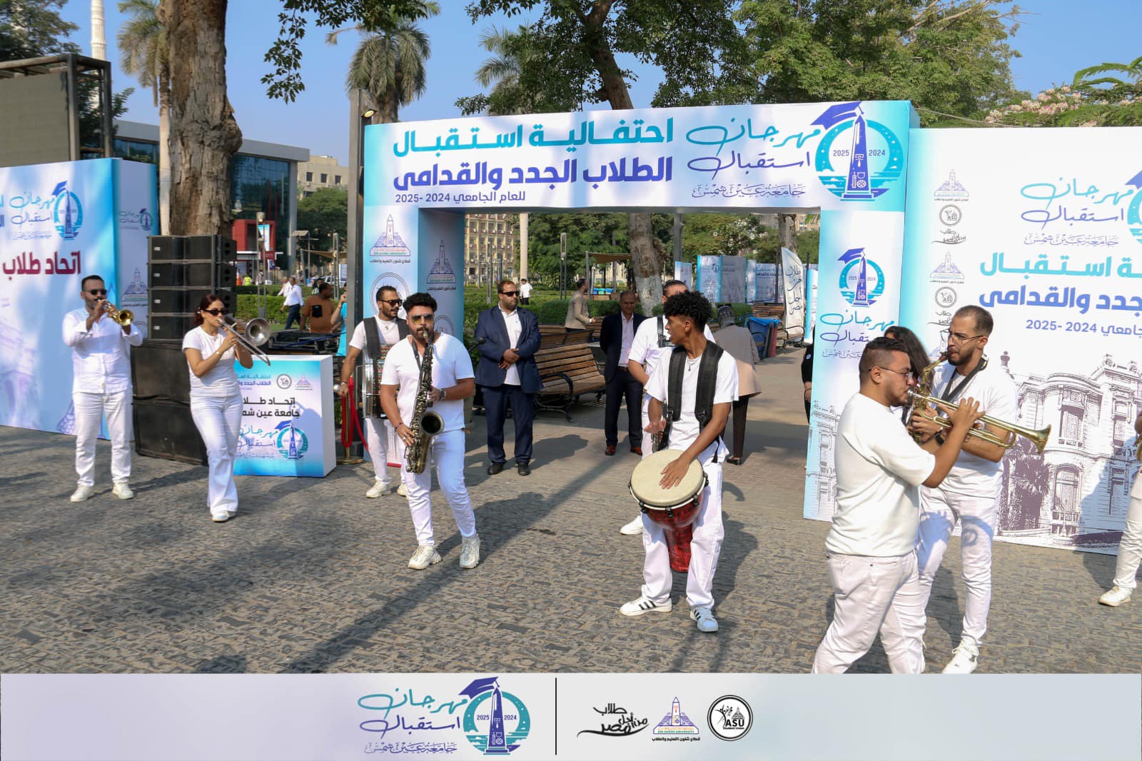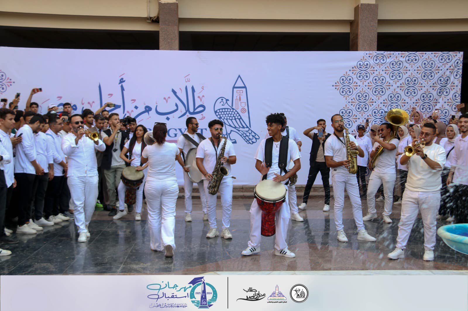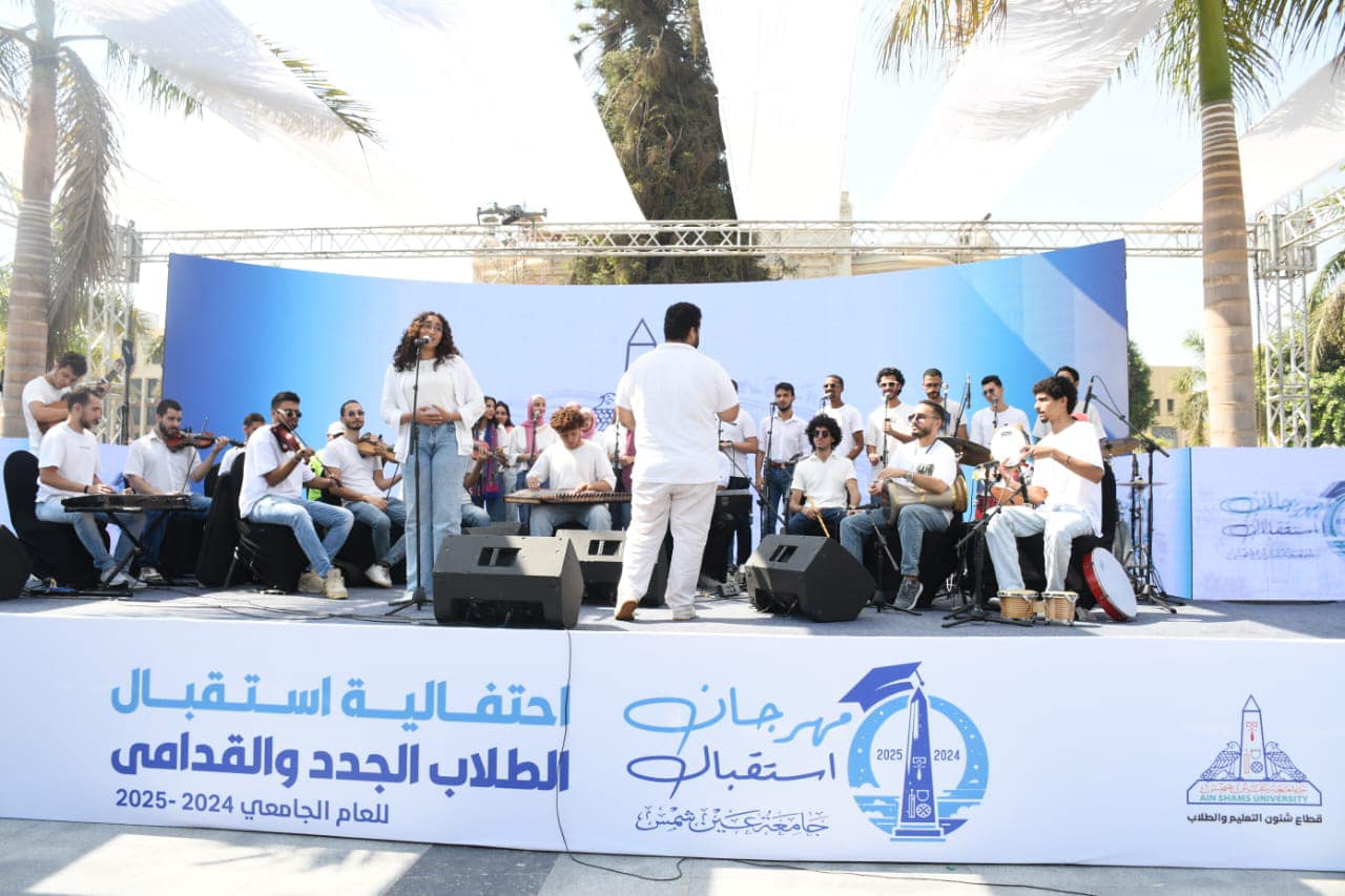 The university year reception festival was organized and coordinated by the Education and Students Sector and the Students for Egypt family at Ain Shams University in cooperation with the university students union and all its committees: social, cultural, artistic, scouting, families, scientific, sports, and the Central Social Solidarity Fund.