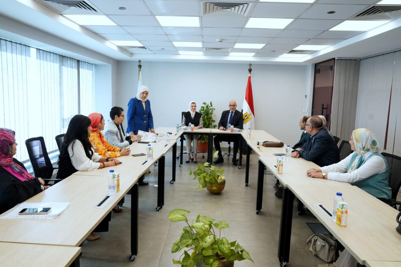 The meeting was attended by Prof. Hoda Sosa, Dr. Noha El-Rafie, Deputy Director of the Grants and Projects Administration, and a group of the university’s Grants and Projects Office staff members.