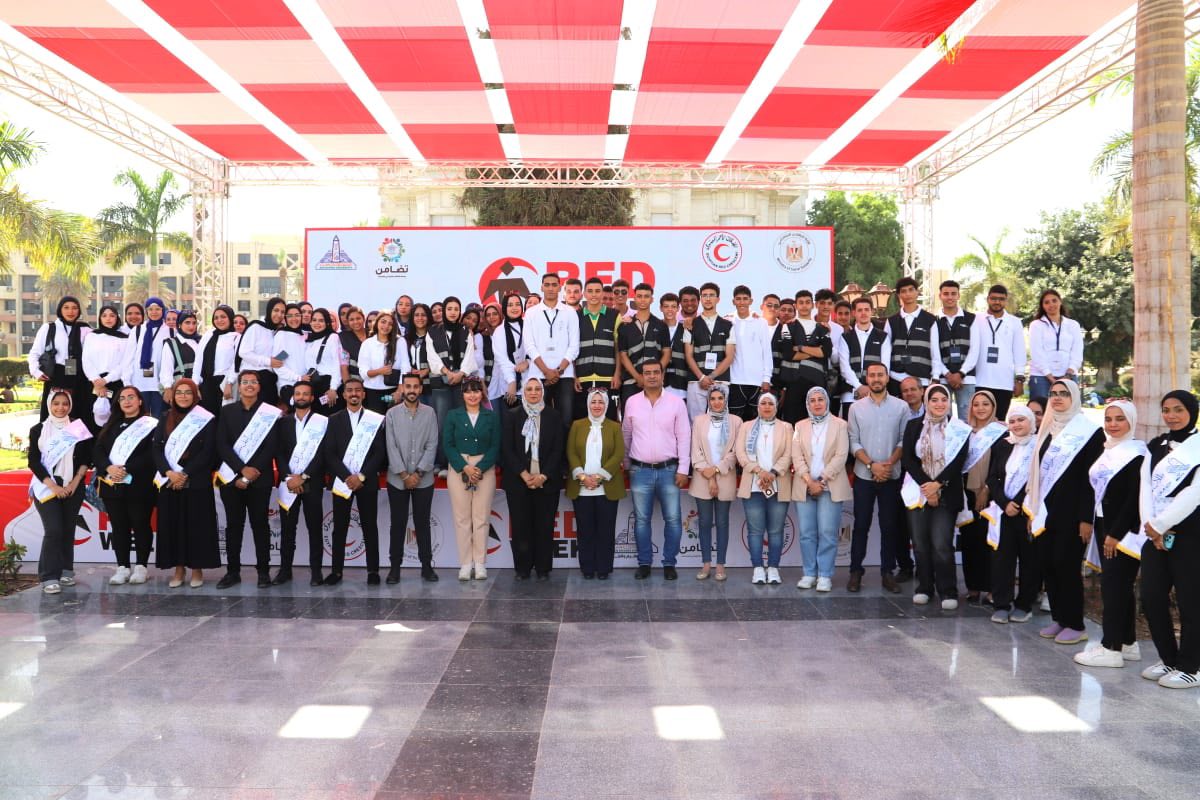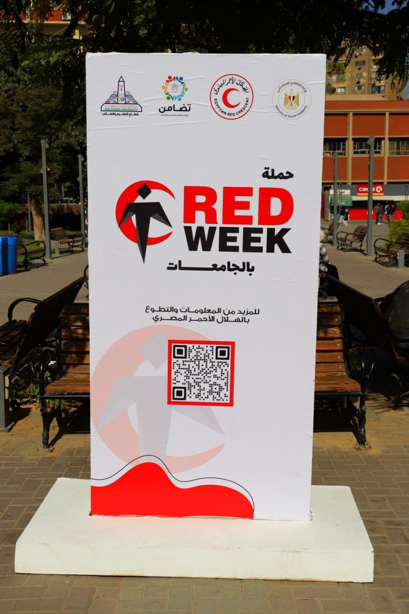 Under the patronage of Prof. Mohamed Diaa Zain El-Abedeen, President of Ain Shams University, and Dr. Maya Morsy, Minister of Social Solidarity, the Education and Student Affairs Sector, represented by the central “Students for Egypt” family and the Scouts Committee of the General Administration for Youth Welfare, in collaboration with the Ministry of Social Solidarity and with the participation of the Egyptian Red Crescent, launched the second edition of the "Red Week" campaign under the slogan: “Recharge Your Energy.”