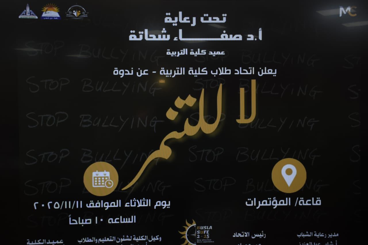 The Education and Student Affairs Sector at the Faculty of Education, Ain Shams University, in cooperation with the Higher Social Committee of the Faculty Students’ Union, organized an awareness seminar entitled “The Phenomenon of Bullying, Its Dangers, and the Need to Stop and Confront It.”