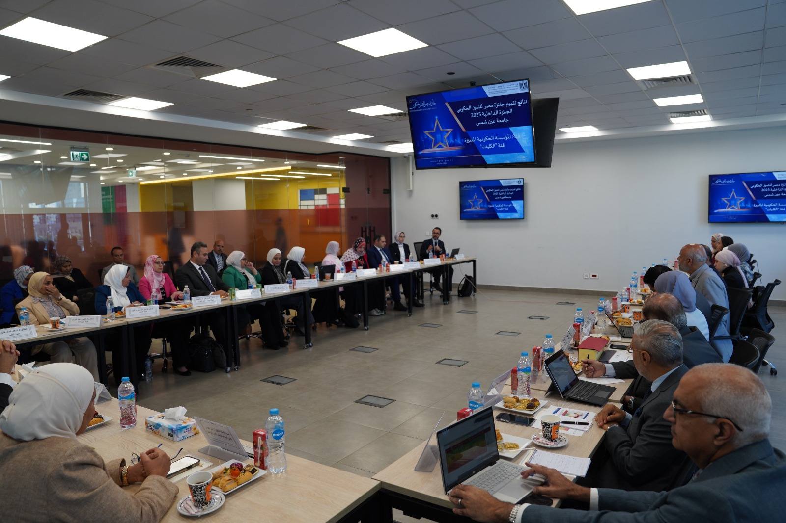 The Egypt Government Excellence Award convened the judging committee meeting for the Ain Shams University Award in its second edition (2025), in the presence of Prof. Mohamed Diaa Zain El-Abedeen, President of Ain Shams University; Prof. Ghada Farouk, Vice President for Community Service and Environmental Development Affairs; and the distinguished members of the judging committee: Prof. Mahmoud Zaki, President of Tanta University; Prof. Ashraf Abdel Basset, President of Hertfordshire University; Prof. Mona Hagrass, Assistant Secretary-General of the Supreme Council of Universities; Prof. Mohamed Abdel Rabbo, Dean of the Institute of Productivity and Quality at the Arab Academy for Science, Technology, and Maritime Transport; Ms. Soha Saeed, Executive Director of the Egypt Government Excellence Award; Dr. Khaled Sharaf El-Din, Accredited Assessor of the Egypt Government Excellence Award; Dr. Ahmed Seddik, Director of Evaluation and Quality at the Egypt Government Excellence Award; and Dr. Abdel Hakim Radwan, Evaluation and Quality Consultant at the Egypt Government Excellence Award.