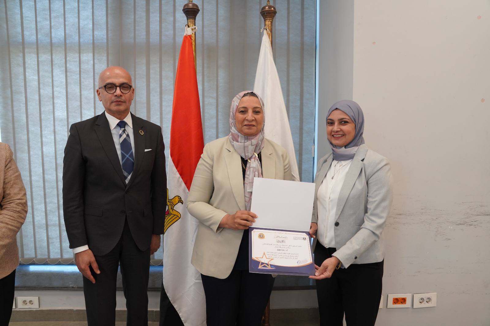Prof. Ghada Farouk added that the participation of 14 faculties represents a significant achievement that reflects the dedicated efforts and the positive competitive spirit toward excellence. She noted the University’s keenness to effectively participate in the Egypt Government Excellence Award for Egyptian universities, alongside adopting governance practices, improving performance, and supporting institutional excellence at both the individual and organizational levels. She affirmed the faculties’ commitment to continuous and sustainable development, which was evident in the progress made by several faculties in the second edition of the award compared to the first.