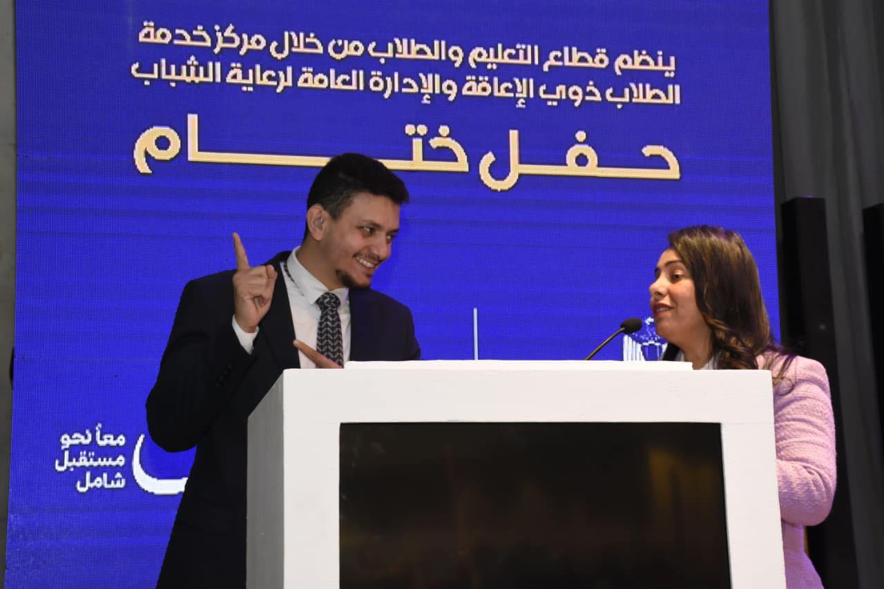 In his address during the ceremony, Prof. Rami Maher Ghali expressed his delight at being among his students at the conclusion of the " Tamkeen… Together Towards an Inclusive Future" initiative. This initiative embodies the Egyptian state's vision for a more conscious and equitable society, and it comes in implementation of the directives of His Excellency President Abdel Fattah El-Sisi, who has given unprecedented attention and care to the issue of people with disabilities.