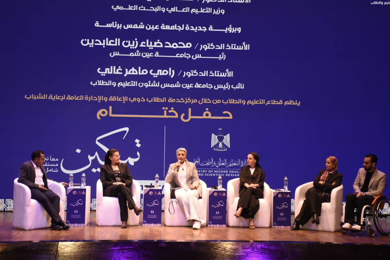 The activities of the presidential initiative " Tamkeen," launched by President Abdel Fattah El-Sisi to support and empower students with disabilities in Egyptian universities, concluded today at Ain Shams University. The initiative, themed "Together Towards an Inclusive Future," was held under the auspices of Prof. Mohamed Ayman Ashour, Minister of Higher Education and Scientific Research; Prof. Mohamed Diaa Zain El-Abedeen, President of the University; and Prof. Rami Maher Ghali, Vice President of the University for Education and Student Affairs. The initiative was fully organized by the Education and Student Affairs sector at Ain Shams University through the Center for Services for Students with Disabilities and the General Administration for Youth Welfare, with general coordination and administrative supervision by Mr. Ibrahim Saeed Hamza, Assistant Secretary of the University for Education and Student Affairs. The event included numerous activities.