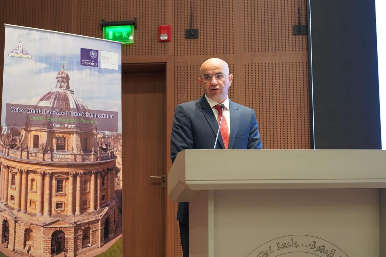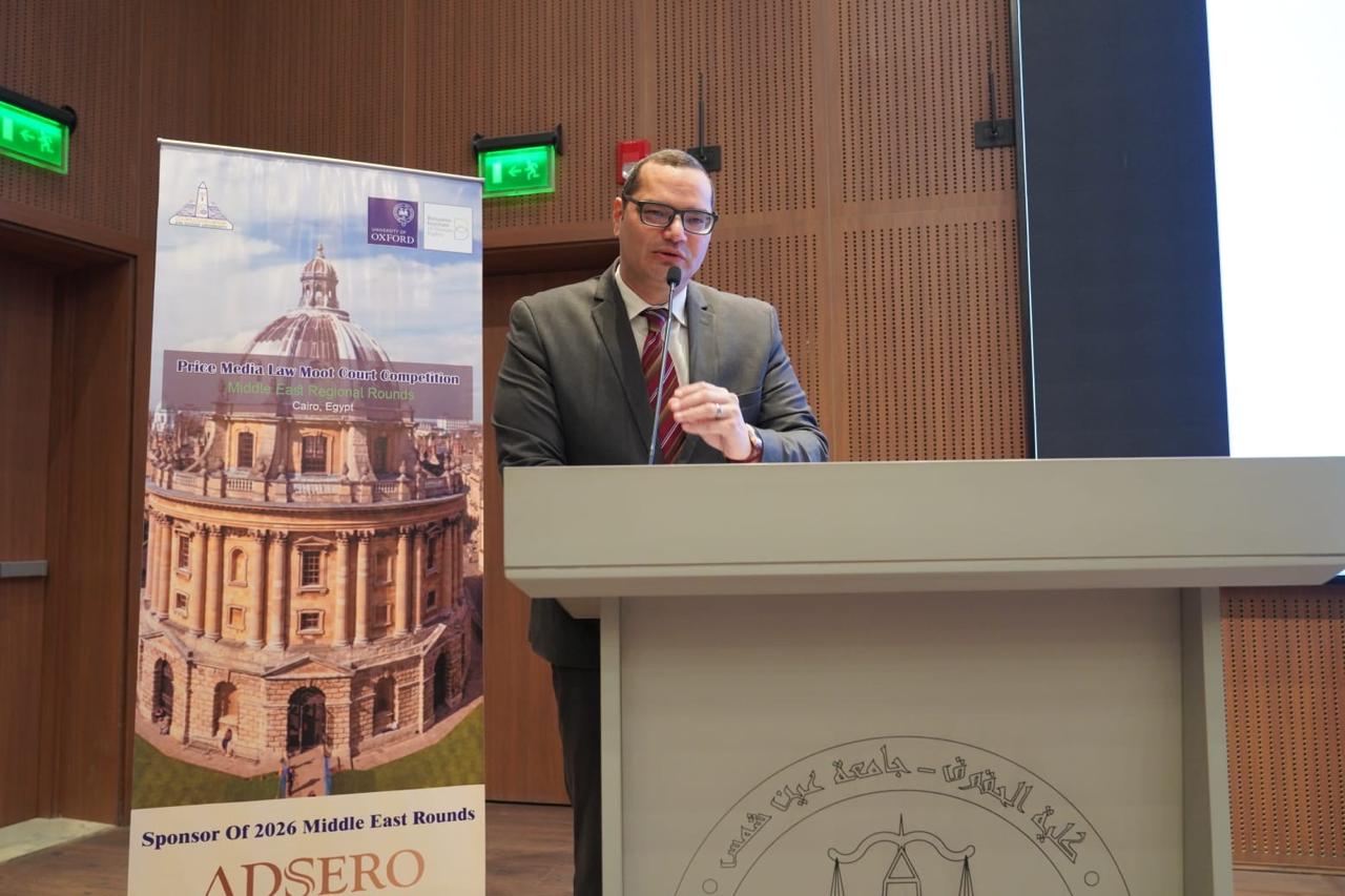 Prof. Mohamed Diaa Zain El-Abedeen, President of Ain Shams University, inaugurated the Middle East Round of the international “Oxford Price Media Moot Court” Competition, held from 1 to 4 February 2026 and hosted by the Faculty of Law at Ain Shams University.