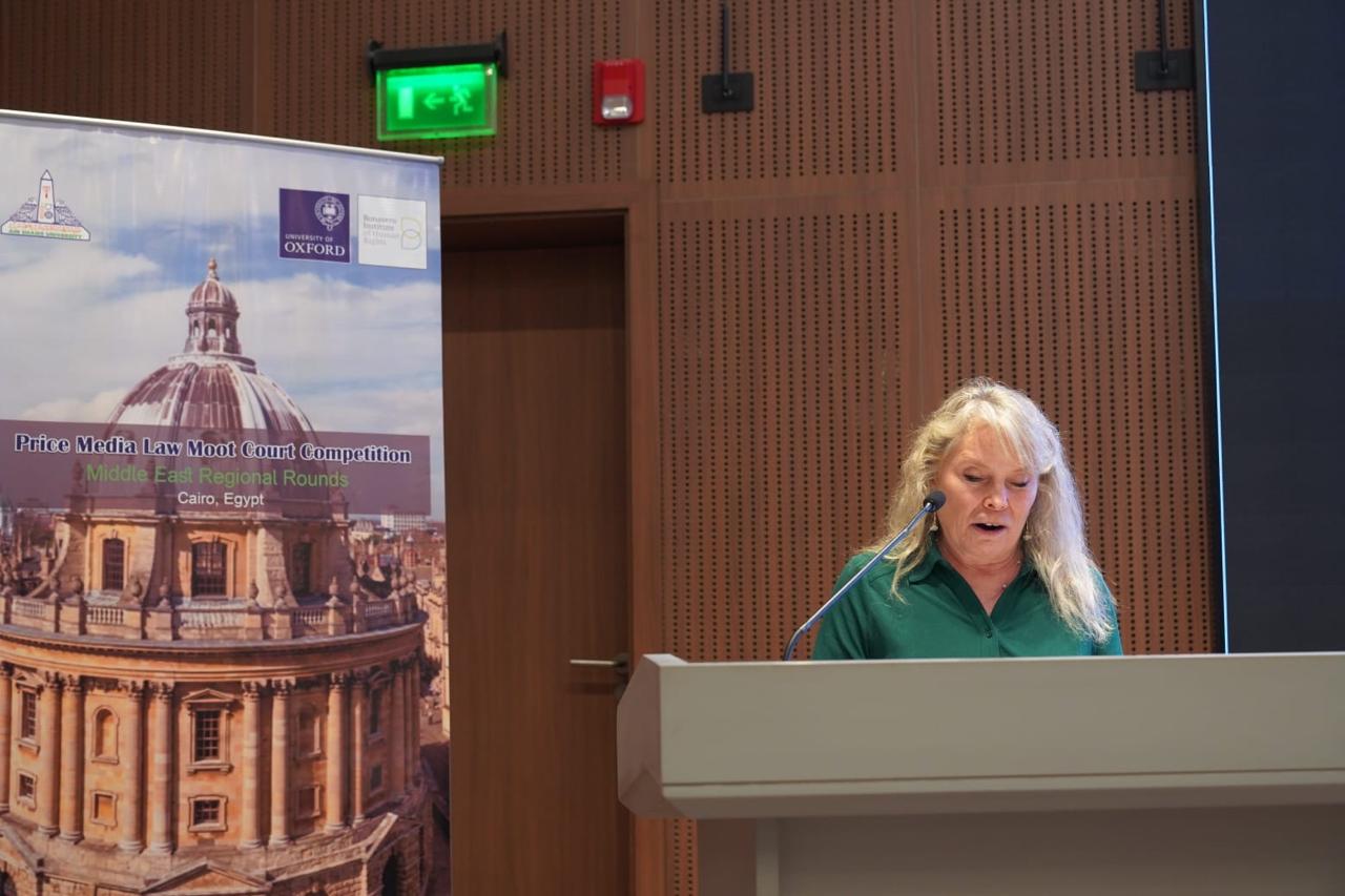 For her part, Ms. Elizabeth Bektold, representing the Bonavero Institute of Human Rights at the University of Oxford, highlighted the depth of partnership with Ain Shams University, noting that the continued hosting of this round in Cairo reflects a genuine commitment to advancing human rights and media law standards in the region. She added that the University of Oxford highly values the analytical capabilities demonstrated by participating students, which contribute to building a shared global legal language.