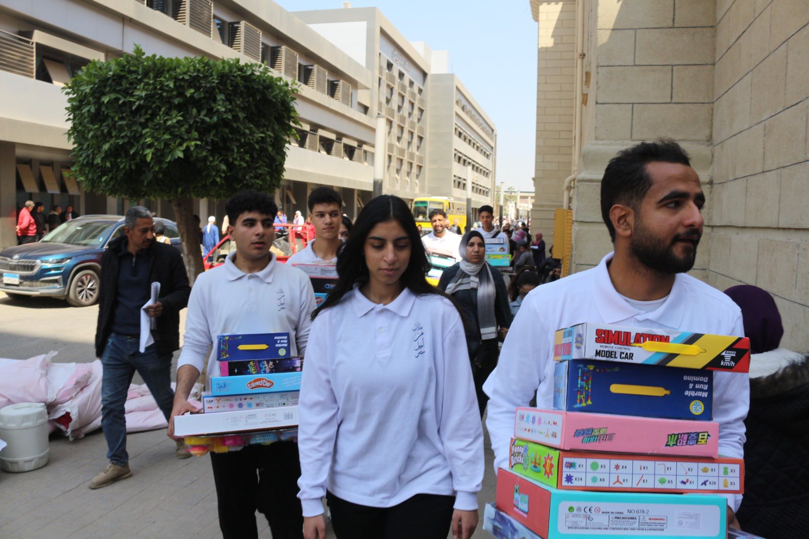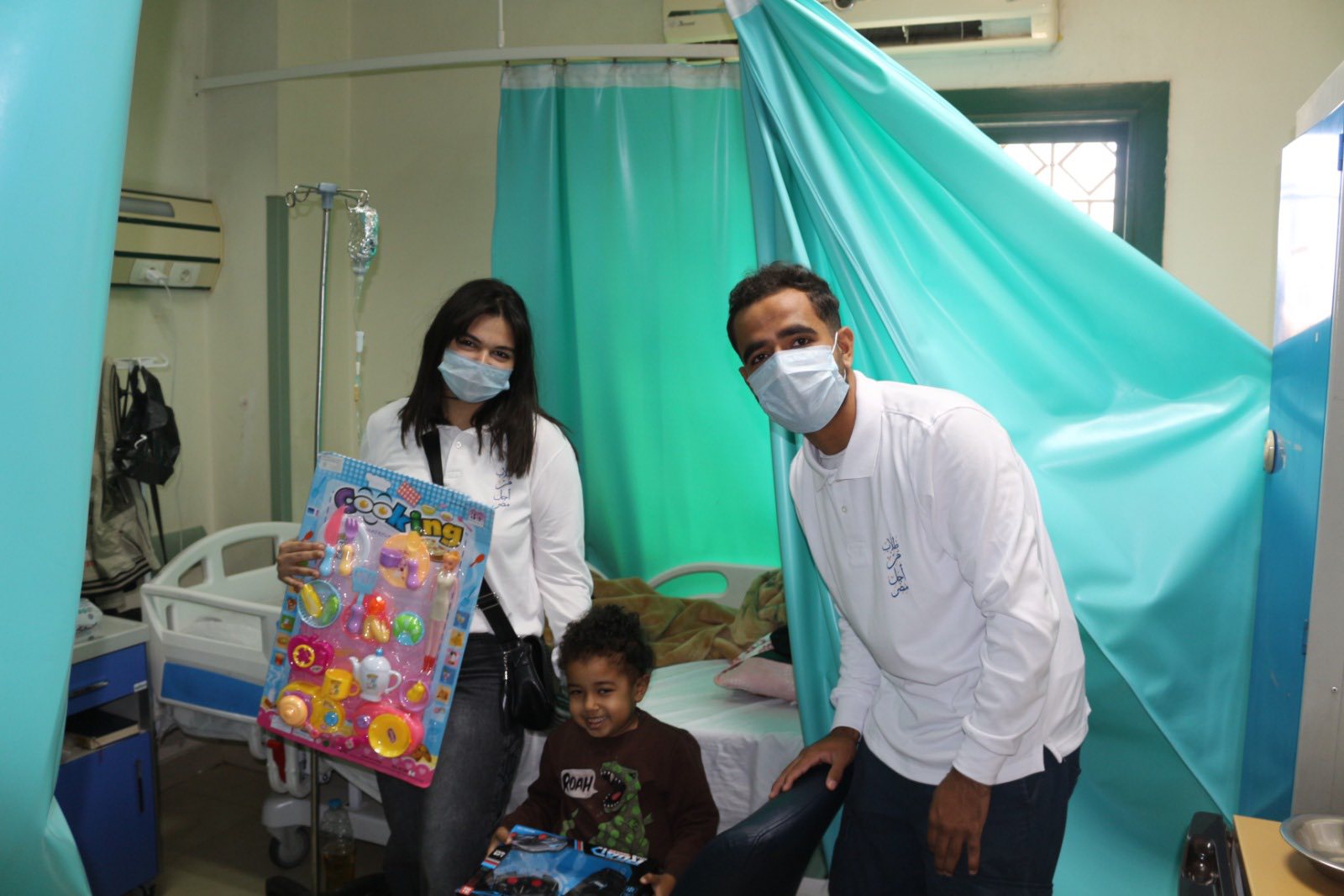 Students from the "Students for Egypt" family were keen to spend enjoyable time with the sick children, interacting with them and distributing toys and gifts. This brought smiles to their faces and eased their suffering in a warm and loving atmosphere. They also offered the children their best wishes on the occasion of the upcoming Eid al-Fitr holiday.