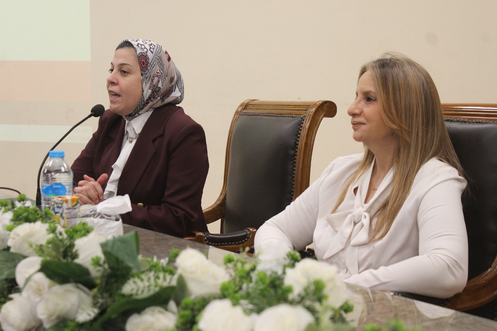 At the beginning of the event, Prof. Hanan Kamel Metwally, Dean of the Faculty, delivered a welcoming address, expressing her great pleasure at hosting Dr. Amal Imam. She praised Dr. Imam's international standing and prominent role in humanitarian work, emphasizing that the Egyptian Red Crescent represents one of the most important humanitarian arms that reflects Egypt's civilized image and its historical role in supporting people and assisting those affected by crises.